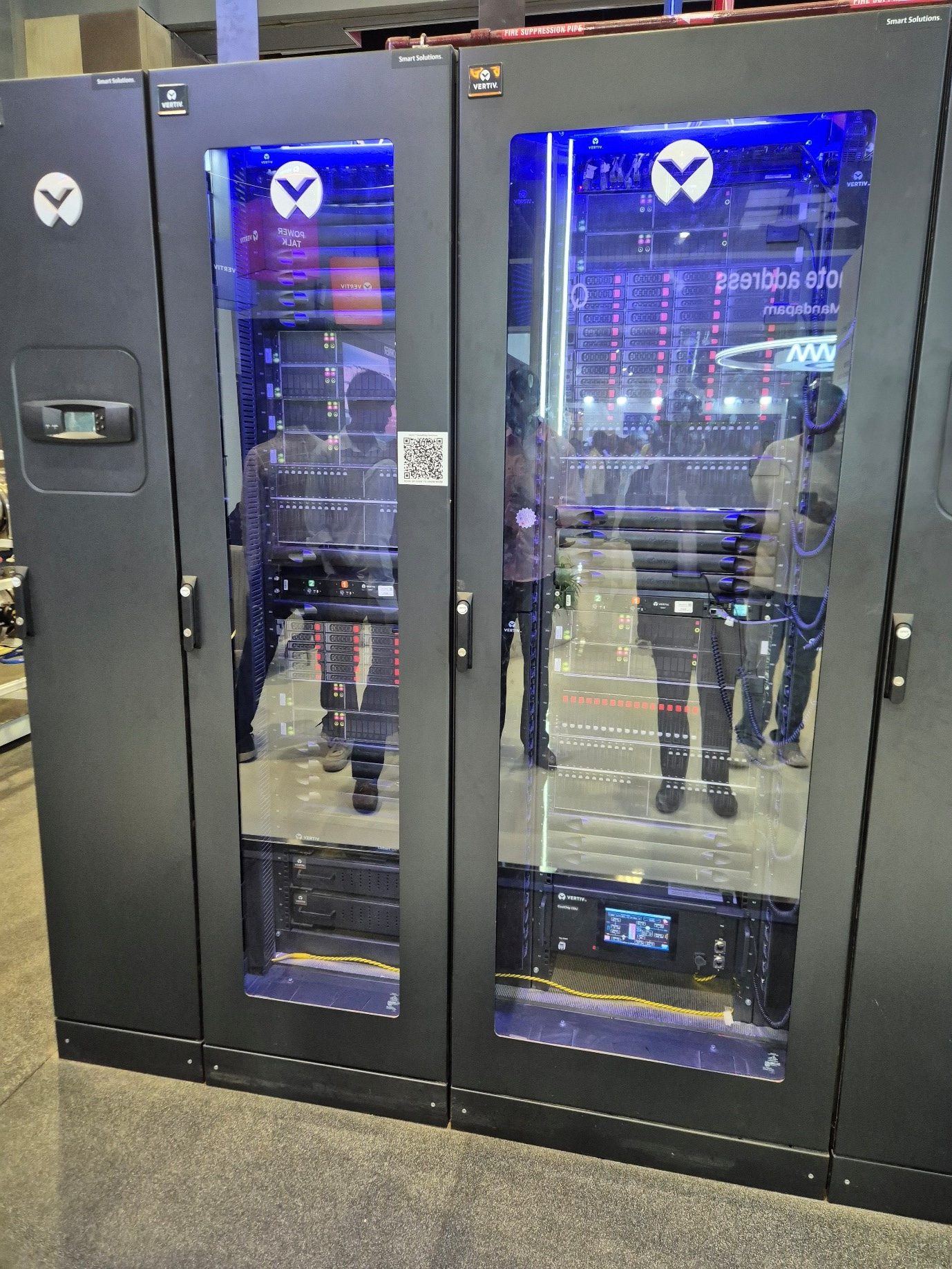He took us to the Vertiv area to see huge server machines. These big machines help AI systems work properly without melting down.